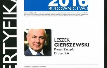 „Drutex the Construction Company of the Year – it sounds proudly. I am happy to have received this award yet again since it confirms our strength, possibilities and aspirations. We are a company with over 30-year tradition and we have always set ambitious goals, which has resulted in current company positions in Poland and in Europe. After all, we are the leading European window producer with a stable position and high world appreciation. Our products reach the most prestigious locations, such as the New York Hilton or the Lego factory in Mexico. Such results cannot be achieved overnight. They require years of work and the commitment of all the team. The title we received is a reward for effort and ambitions of all the team ” – says Leszek Gierszewski, the president of Drutex S.A.