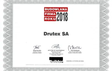 On 24 January in Warsaw took place the Builder monthly magazine gala, awarding construction companies that achieved brilliant success in 2018. Drutex, the leading producer of windows, doors and roller shutters in Europe, yet again was among the awarded companies